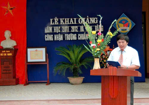 Nhà giáo Hiệu trưởng Nguyễn Đình Triển đọc diễn văn khai giảng năm học 2011-2012