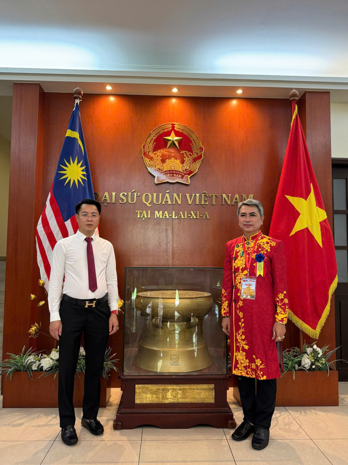TS. Phạm Văn Thăng - Viện trưởng Viện Nghiên cứu Bảo tồn và Phát triển văn hóa Đông Nam Á chụp ảnh lưu niệm ở Đại sứ quán Việt Nam tại Malaysia